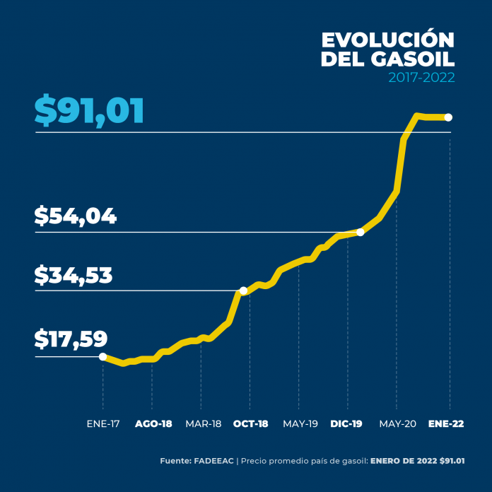Cabe destacar que, tras varios meses sin aumentos, la fuerte suba del Combustible en los primeros días de febrero -estimado en términos generales en un 9%- implica un piso para los costos de febrero de 3%. El aumento promedio del gasoil alcanzó el 39,2% en 2021 tras haberse incrementado 45,5% en 2019 y 77% en 2018.